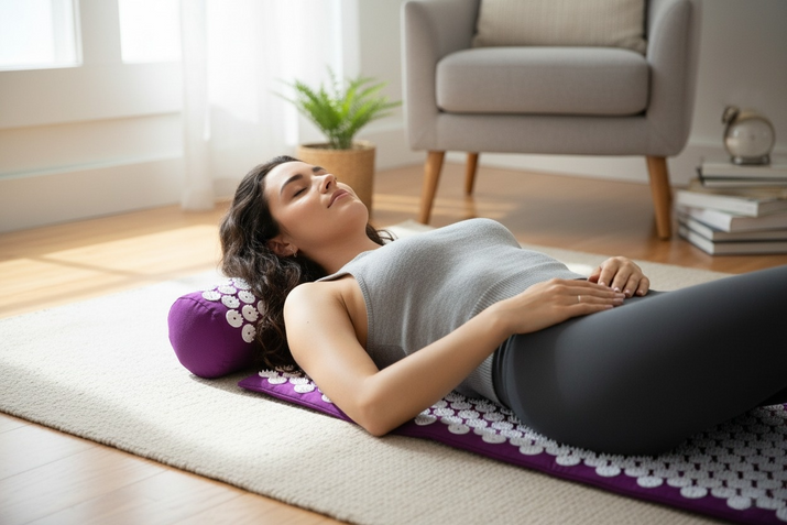 Experience relaxation and holistic wellness with this acupressure mat and pillow set. Perfect for reducing tension in your body and promoting deep relaxation in the comfort of your home.